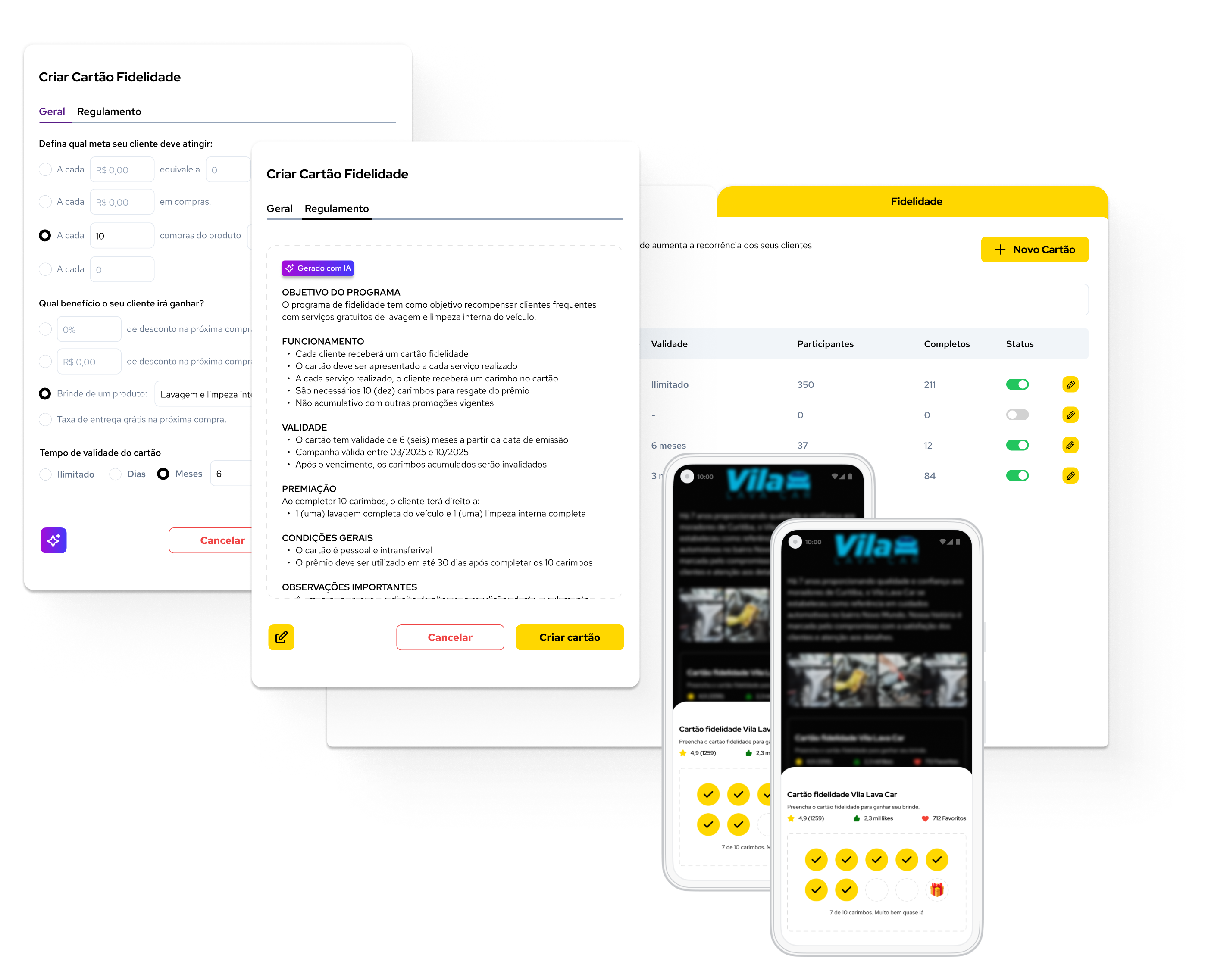 Transforme seu cartão fidelidade tradicional com o Cartão Fidelidade Digital Yellow Pin. Ganhe controle total, saiba o perfil dos clientes participantes, tenha interações diretas com seus clientes, tudo com a facilidade de gerenciamento Yellow Pin