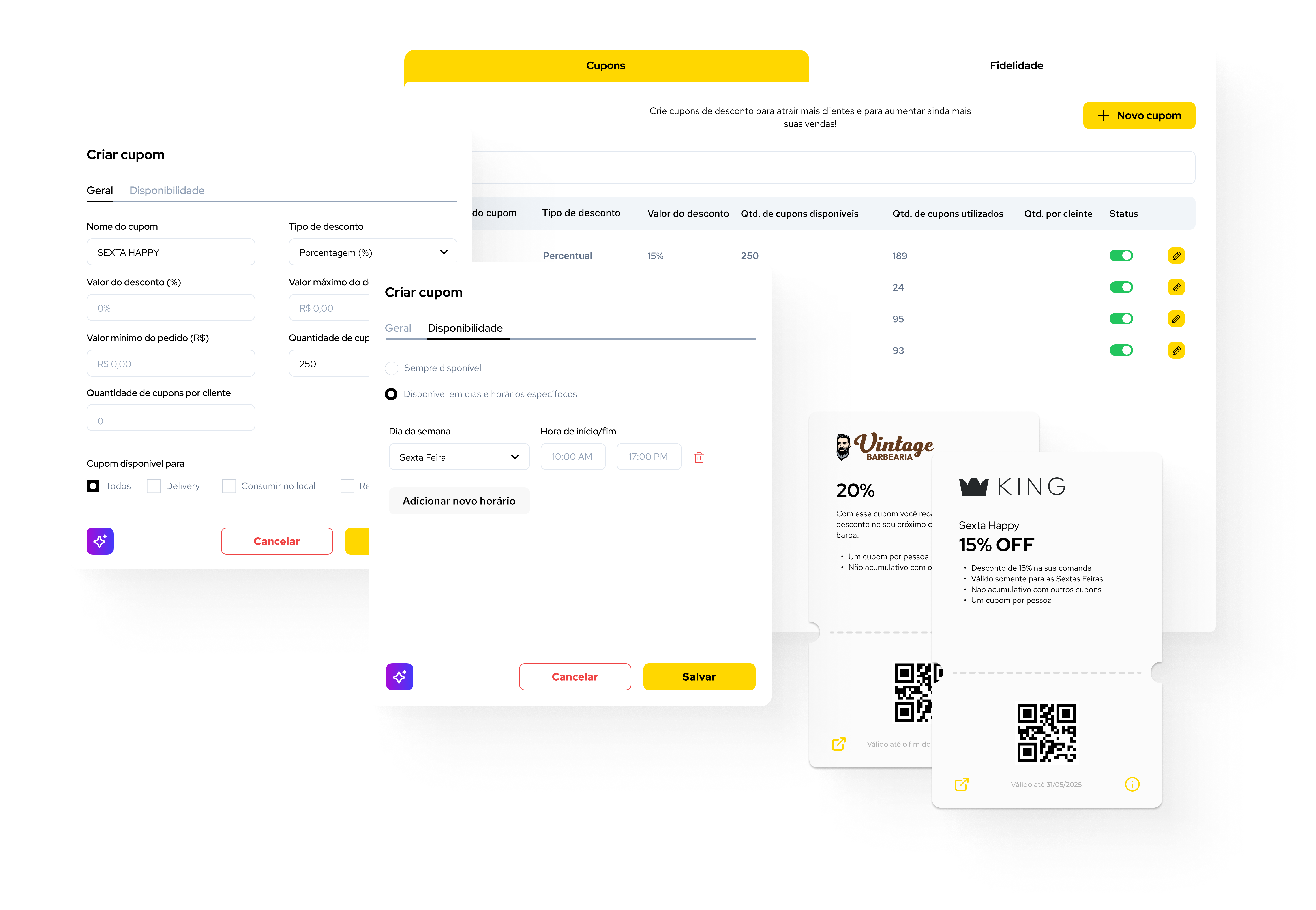 Crie cupons de desconto do seu jeito! Personalize cada detalhe com total autonomia: defina quantidade, período de validade e condições específicas. Você no controle das suas estratégias promocionais, sem limitações.