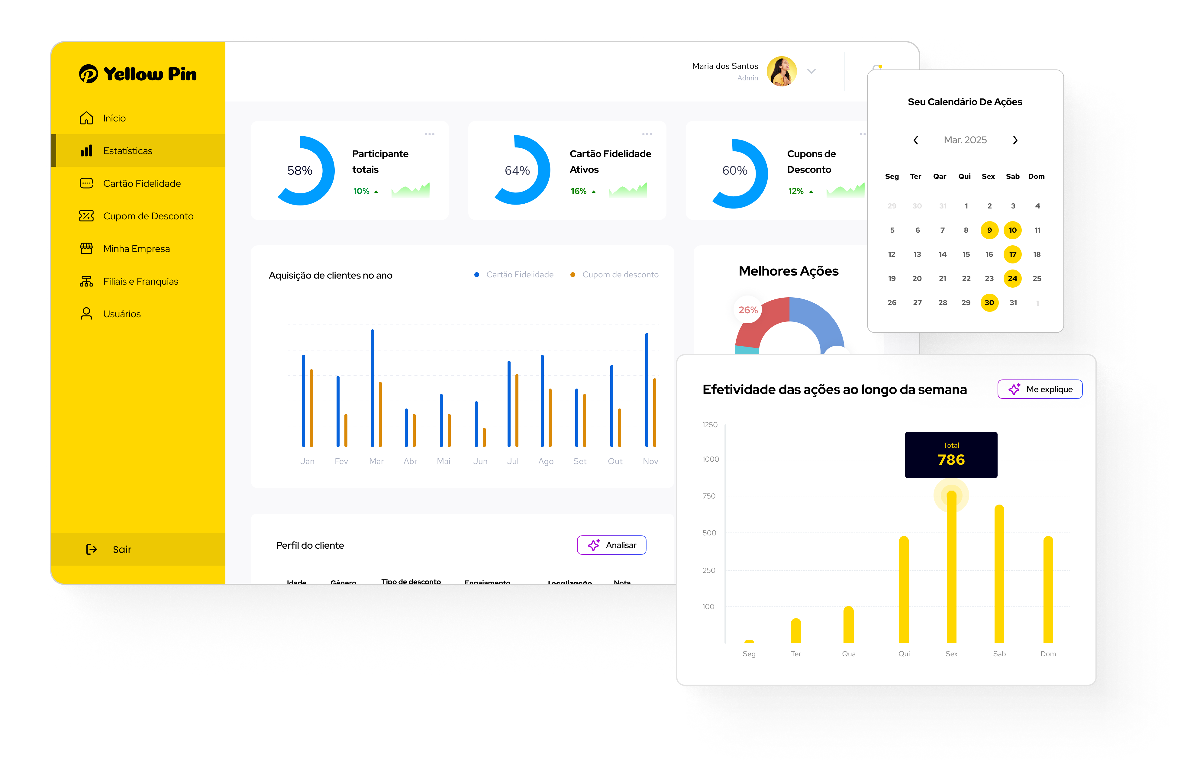 Tome decisões baseadas em dados com relatórios estratégicos Yellow Pin que revelam o verdadeiro impacto de suas ações. Acompanhe métricas essenciais, analise o comportamento dos clientes e descubra padrões que impulsionam sua empresa.
